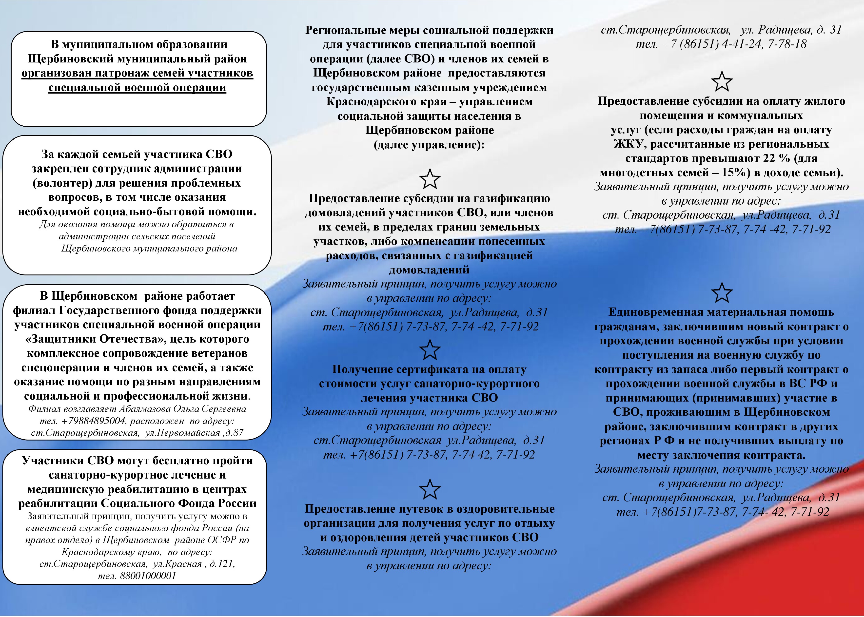 Памятка о мерах поддержки участников специальной военной операции